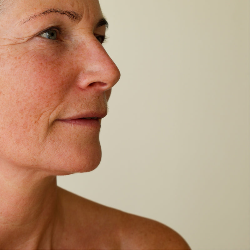 Reife Haut ist oft dünner und spiegelt ein erfülltes Leben wider, indem sie feine Linien und Falten sowohl von Freude als auch von Sorgen zeigt. Ein Mangel an Feuchtigkeit und Lipiden äußert sich oft in Trockenheitsfältchen, und die Haut kann Schwierigkeiten haben, ihre Ausstrahlung zu bewahren. Jahrelange Einwirkung von UV-Strahlen, freien Radikalen und Umweltstress kann zu Pigmentflecken, Talgansammlungen, vergrößerten Poren und anderen Merkmalen führen, die typischerweise bei trockener Haut auftreten.